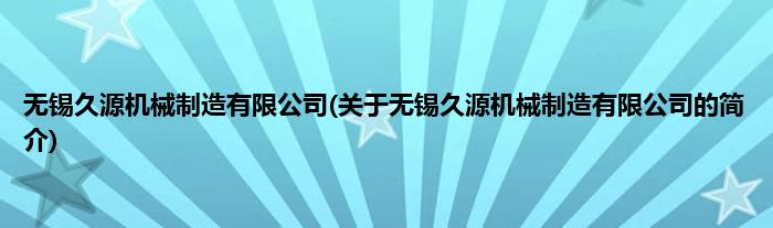本文关于无锡久源机械制造有限公司的简介就讲解完毕,希望对大家有所帮助。