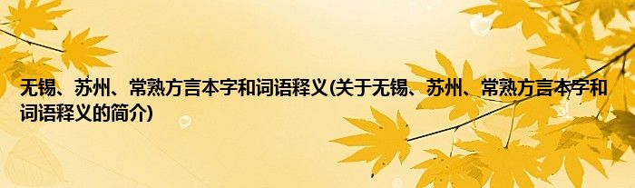 本文关于无锡、苏州、常熟方言本字和词语释义的简介就讲解完毕,希望对大家有所帮助。