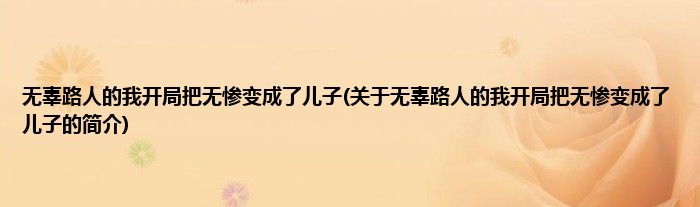 无辜路人的我开局把无惨变成了儿子(关于无辜路人的我开局把无惨变成了儿子的简介)