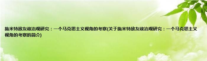 大家好,施米特敌友政治观研究:一个马克思主义视角的考察,关于施米特敌友政治观研究:一个马克思主义视角的考察的简介很多人还不知道,现在让我们一起来看看吧!