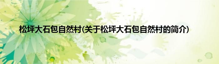 本文关于松坪大石包自然村的简介就讲解完毕,希望对大家有所帮助。