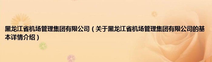 本文关于黑龙江省机场管理集团有限公司的基本详情介绍就讲解完毕,希望对大家有所帮助。