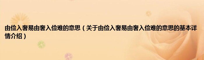 本文关于由俭入奢易由奢入俭难的意思的基本详情介绍就讲解完毕,希望对大家有所帮助。