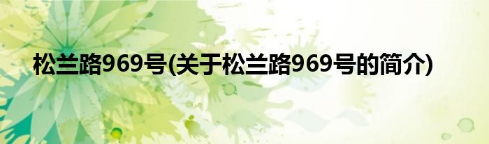 本文关于松兰路969号的简介就讲解完毕,希望对大家有所帮助。