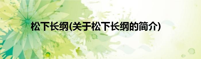 本文关于松下长纲的简介就讲解完毕,希望对大家有所帮助。