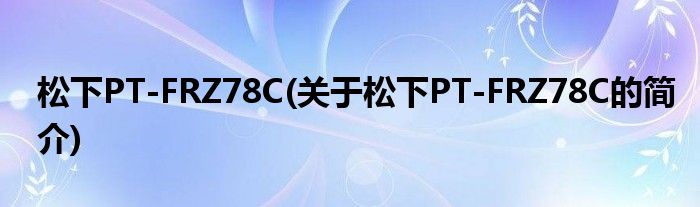 本文关于松下PT-FRZ78C的简介就讲解完毕,希望对大家有所帮助。
