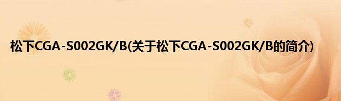本文关于松下CGA-S002GK/B的简介就讲解完毕,希望对大家有所帮助。