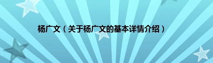 本文关于杨广文的基本详情介绍就讲解完毕,希望对大家有所帮助。