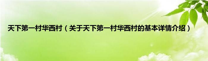 本文关于天下第一村华西村的基本详情介绍就讲解完毕,希望对大家有所帮助。