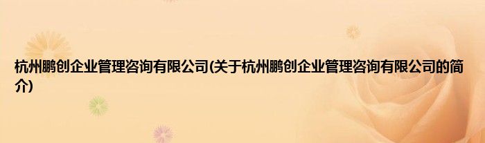 本文关于杭州鹏创企业管理咨询有限公司的简介就讲解完毕,希望对大家有所帮助。
