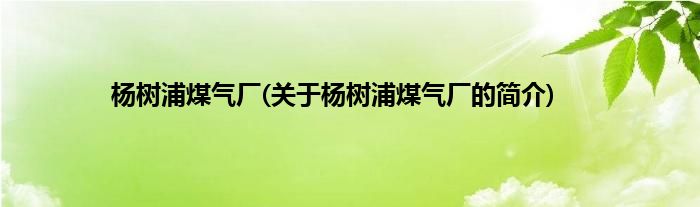 大家好,杨树浦煤气厂,关于杨树浦煤气厂的简介很多人还不知道,现在让我们一起来看看吧!