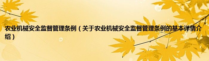 本文关于农业机械安全监督管理条例的基本详情介绍就讲解完毕,希望对大家有所帮助。