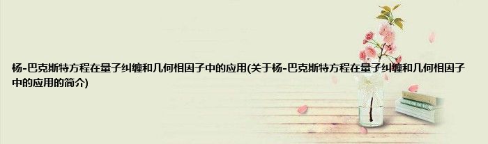 本文关于杨-巴克斯特方程在量子纠缠和几何相因子中的应用的简介就讲解完毕,希望对大家有所帮助。