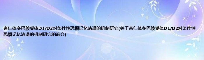 大家好,杏仁体多巴胺受体D1/D2对条件性恐惧记忆消退的机制研究,关于杏仁体多巴胺受体D1/D2对条件性恐惧记忆消退的机制研究的简介很多人还不知道,现在让我们一起来看看吧!