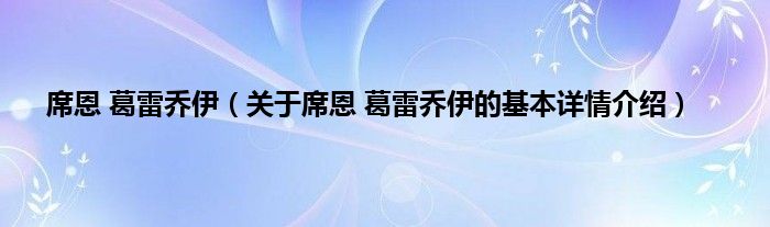 本文关于席恩 葛雷乔伊的基本详情介绍就讲解完毕,希望对大家有所帮助。