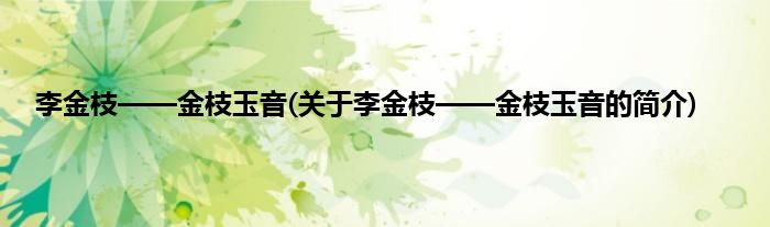 本文关于李金枝——金枝玉音的简介就讲解完毕,希望对大家有所帮助。