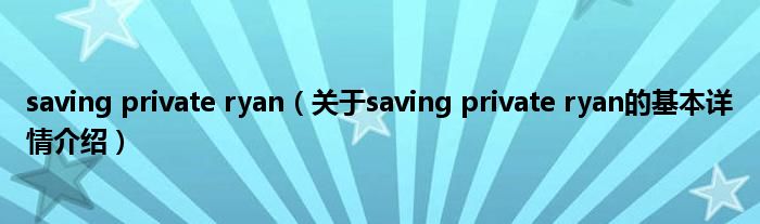 本文关于saving private ryan的基本详情介绍就讲解完毕,希望对大家有所帮助。