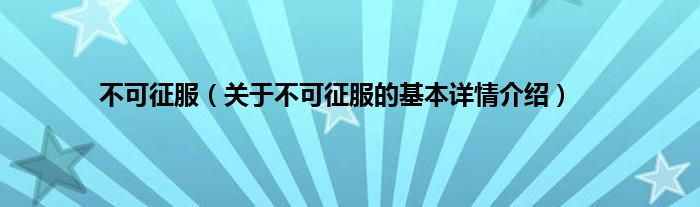 本文关于不可征服的基本详情介绍就讲解完毕,希望对大家有所帮助。