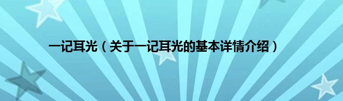 本文关于一记耳光的基本详情介绍就讲解完毕,希望对大家有所帮助。