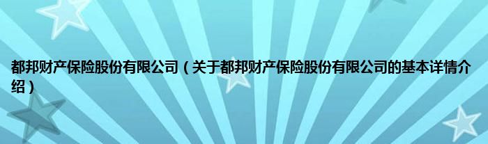 本文关于都邦财产保险股份有限公司的基本详情介绍就讲解完毕,希望对大家有所帮助。