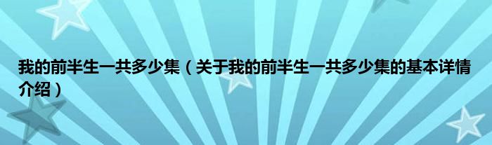 大家好我是小蝌蚪,我的前半生一共多少集,关于我的前半生一共多少集的基本详情介绍很多人还不知道,那么现在让我们一起来看看吧!