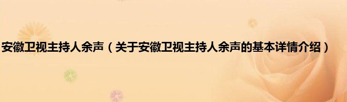 本文关于安徽卫视主持人余声的基本详情介绍就讲解完毕,希望对大家有所帮助。