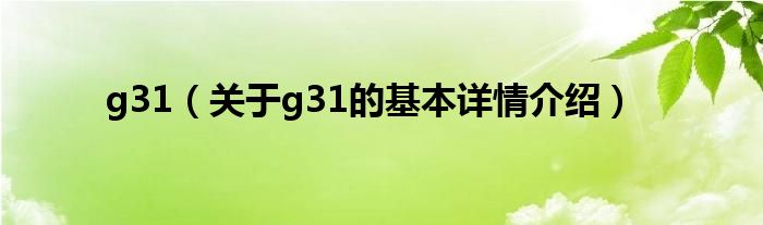 本文关于g31的基本详情介绍就讲解完毕,希望对大家有所帮助。