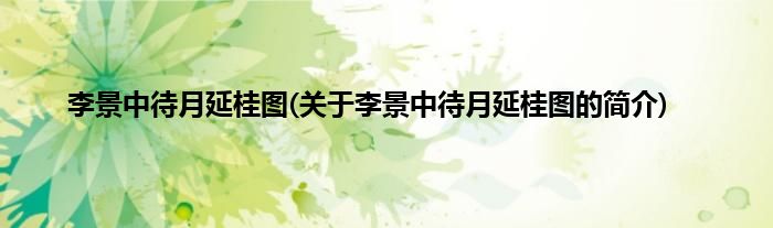本文关于李景中待月延桂图的简介就讲解完毕,希望对大家有所帮助。