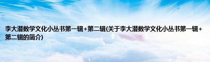 本文关于李大潜数学文化小丛书第一辑+第二辑的简介就讲解完毕,希望对大家有所帮助。