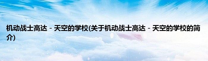 本文关于机动战士高达-天空的学校的简介就讲解完毕,希望对大家有所帮助。