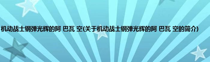 本文关于机动战士钢弹光辉的阿。巴瓦。空的简介就讲解完毕,希望对大家有所帮助。