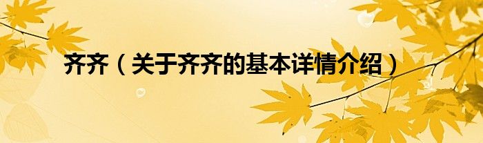 本文关于齐齐的基本详情介绍就讲解完毕,希望对大家有所帮助。