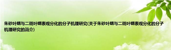 本文关于朱砂叶螨与二斑叶螨表观分化的分子机理研究的简介就讲解完毕,希望对大家有所帮助。