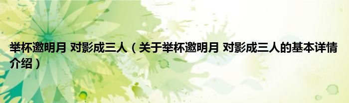 本文关于举杯邀明月 对影成三人的基本详情介绍就讲解完毕,希望对大家有所帮助。