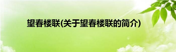 大家好,望春楼联,关于望春楼联的简介很多人还不知道,现在让我们一起来看看吧!