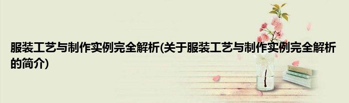 本文关于服装工艺与制作实例完全解析的简介就讲解完毕,希望对大家有所帮助。