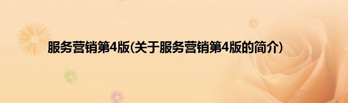 大家好,服务营销第4版,关于服务营销第4版的简介很多人还不知道,现在让我们一起来看看吧!