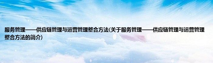 本文关于服务管理——供应链管理与运营管理整合方法的简介就讲解完毕,希望对大家有所帮助。