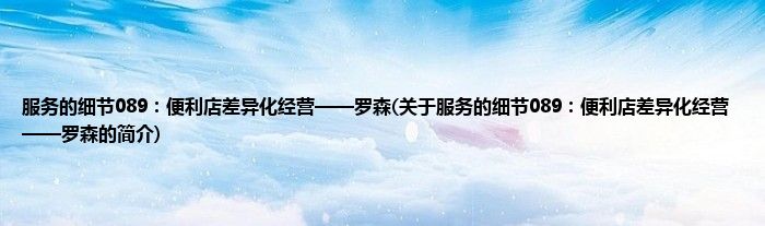 服务的细节089:便利店差异化经营——罗森(关于服务的细节089:便利店差异化经营——罗森的简介)
