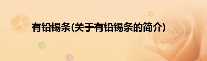 大家好,有铅锡条,关于有铅锡条的简介很多人还不知道,现在让我们一起来看看吧!