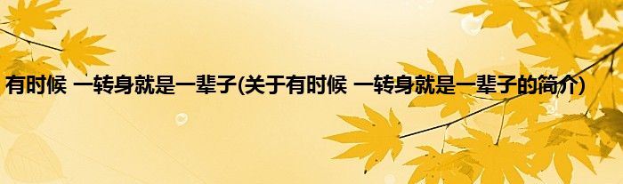 大家好,有时候,一转身就是一辈子,关于有时候,一转身就是一辈子的简介很多人还不知道,现在让我们一起来看看吧!