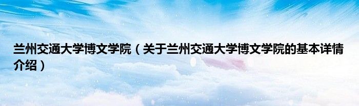 本文关于兰州交通大学博文学院的基本详情介绍就讲解完毕,希望对大家有所帮助。