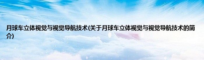 大家好,月球车立体视觉与视觉导航技术,关于月球车立体视觉与视觉导航技术的简介很多人还不知道,现在让我们一起来看看吧!