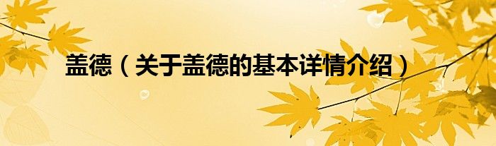 本文关于盖德的基本详情介绍就讲解完毕,希望对大家有所帮助。