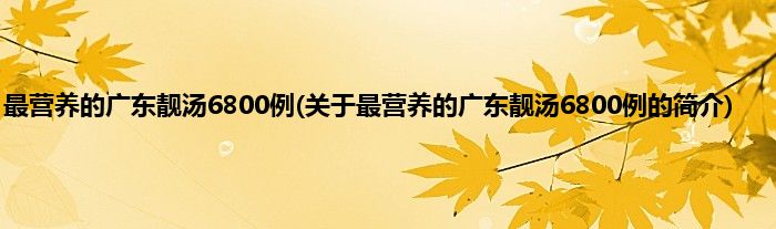 本文关于最营养的广东靓汤6800例的简介就讲解完毕,希望对大家有所帮助。