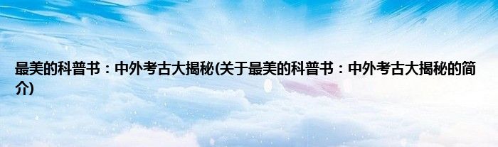 本文关于最美的科普书:中外考古大揭秘的简介就讲解完毕,希望对大家有所帮助。