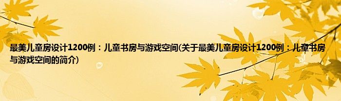 本文关于最美儿童房设计1200例:儿童书房与游戏空间的简介就讲解完毕,希望对大家有所帮助。