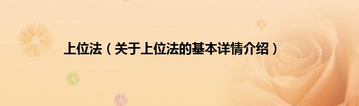 大家好我是小蝌蚪,上位法,关于上位法的基本详情介绍很多人还不知道,那么现在让我们一起来看看吧!