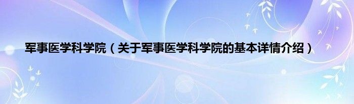 本文关于军事医学科学院的基本详情介绍就讲解完毕,希望对大家有所帮助。