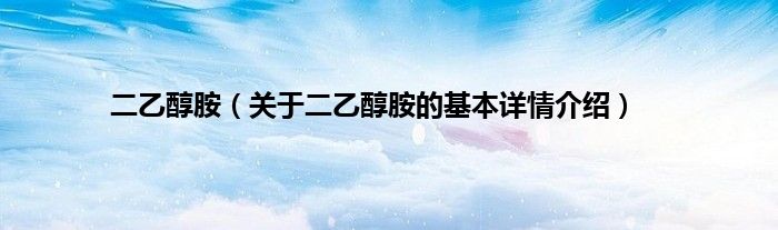 二乙醇胺(关于二乙醇胺的基本详情介绍)